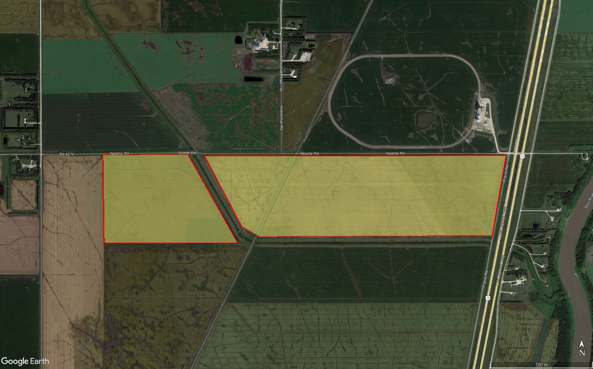 Located between Ste. Agathe and Glenlea with direct access off HWY 75, this 365.34 acre parcel offers an excellent opportunity to expand your land base with high quality, fertile farm land. The Scanterbury and Red River soils are well suited to grow a variety of crops with an MASC crop insurance rating of C. No leases or rights of first refusal are in place. Land is available to farm in 2026. Contact listing agent Stacey Hiebert at 204.371.5930 for more details.